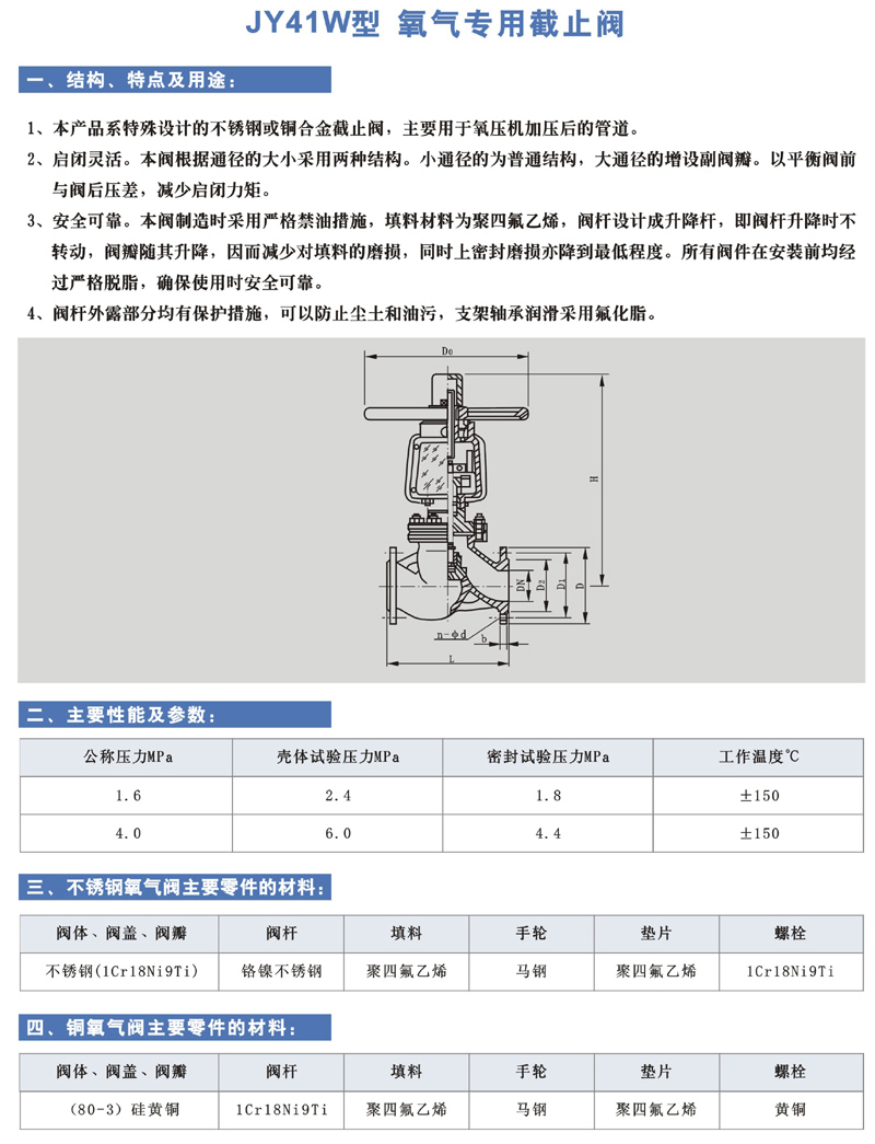 JY41W 型 氧氣專用截止閥