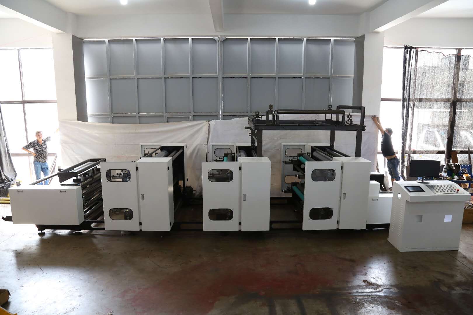1、“上走料”結構降低了版輥和網紋輥的位置從而降低了整個印刷組的重心,設備運行更加平穩,徹底克服了地面灰塵、飛墨、漏墨等對印品的污染;