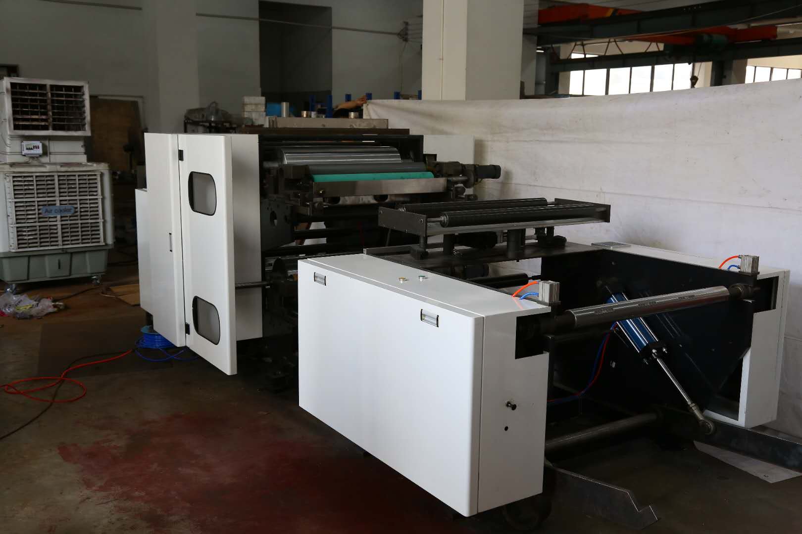 1、“上走料”結構降低了版輥和網紋輥的位置從而降低了整個印刷組的重心,設備運行更加平穩,徹底克服了地面灰塵、飛墨、漏墨等對印品的污染;