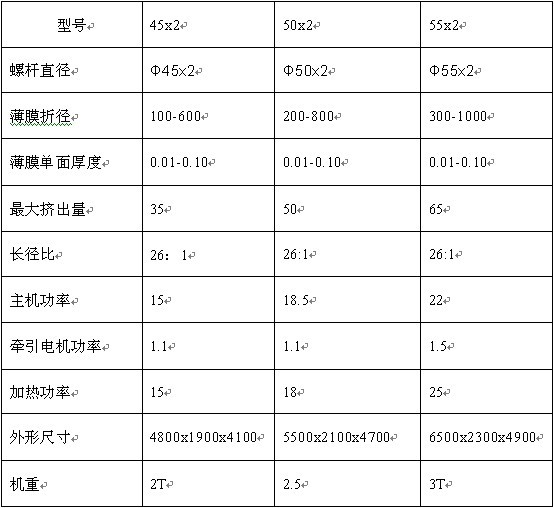 用于吹制低密度聚乙烯(LDPE)、高密度聚乙烯(HDPE)線性低密度聚乙烯(LLPE)等塑料復合膜。廣泛應用于液體包裝、印刷基材、出口產品包裝、工業品包裝以及食品、水果、服裝、紡織品、日用品等民用工業品包裝。SJ-450*2擠出機的機筒、螺桿均采用優質合金鋼,經氮化和精密加工,具有最佳的硬度和耐腐蝕性。