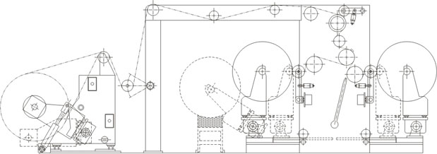 4、無軸中心卷取方式,多工位收卷(4工位,內外側各2工位),各收卷工位均有單獨的驅動和張力控制系統,每個收卷單元都有可獨立操作的壓輥系統。