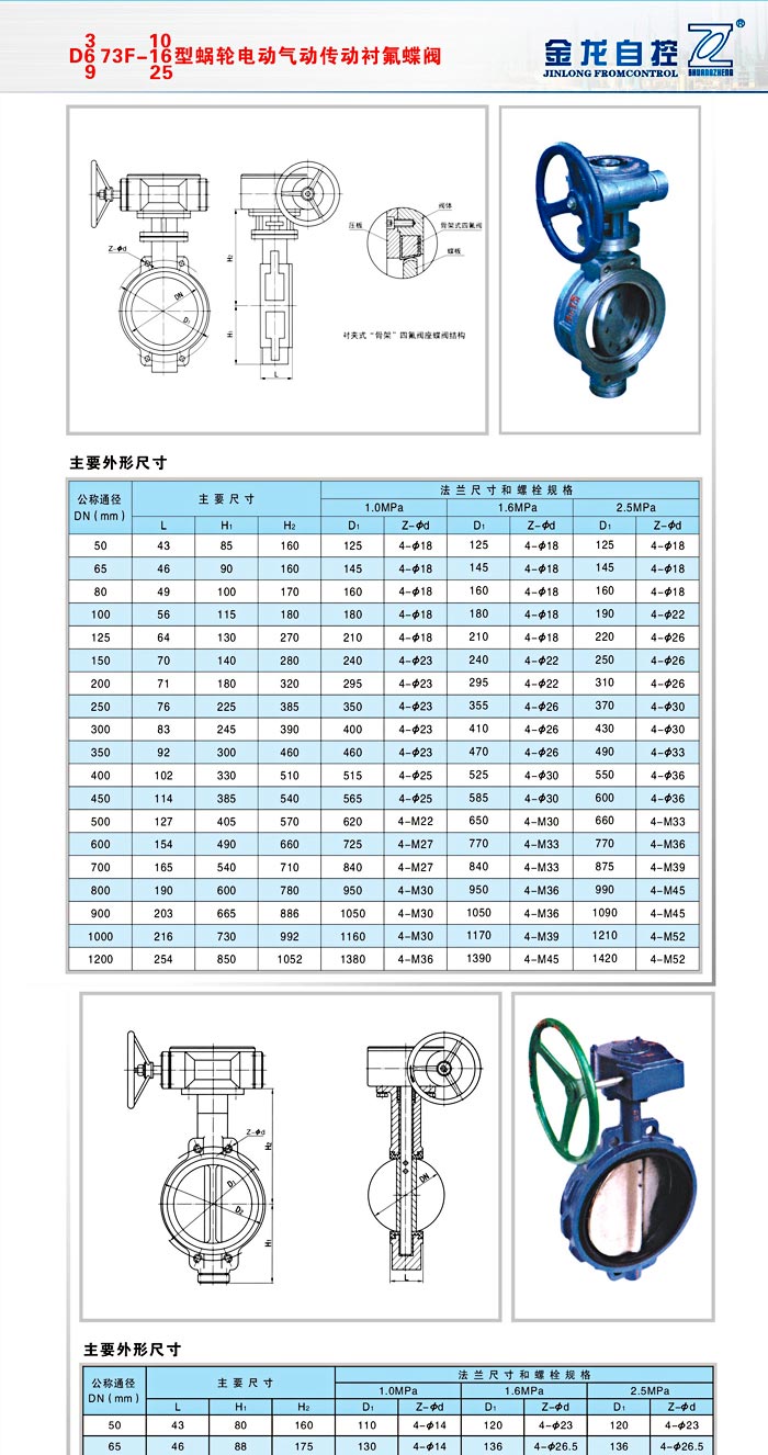 渦輪電動氣動傳動襯氟蝶閥