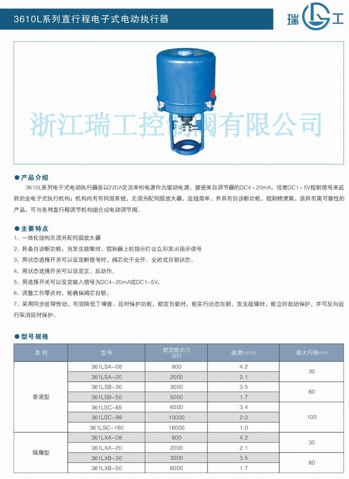 3610L系列直行程電子式電動執行器